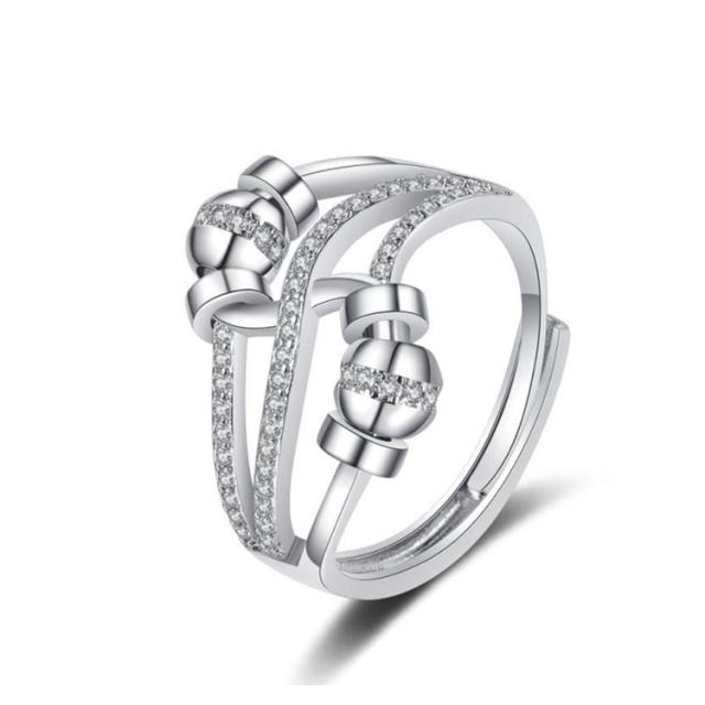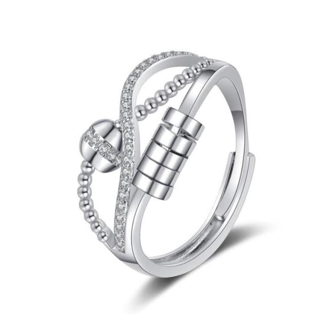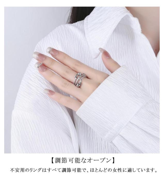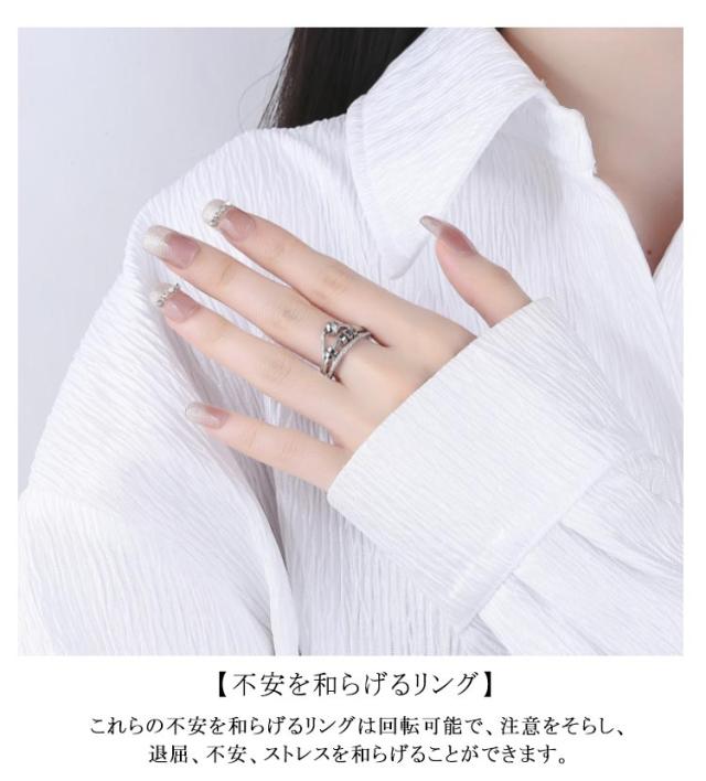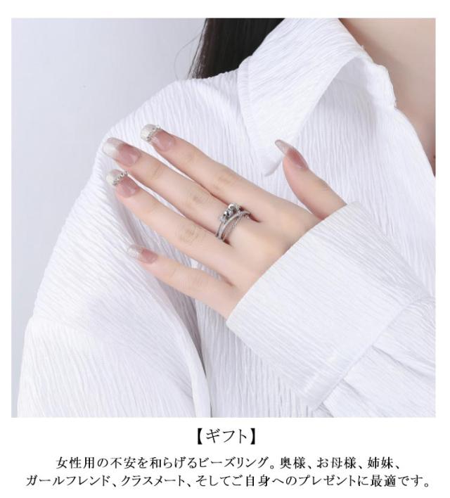 可動ランナー 重ね付け可能リング ストレス解消リング 金属 リング ストレス解消 不安を和らげるリング 調節可能 回転 ストレス解消リング オープンセット ビーズ付き 不安スピリチュアルズ 調節可能な圧力調整リング レディース ストレス解消リング ギフト