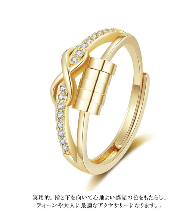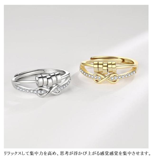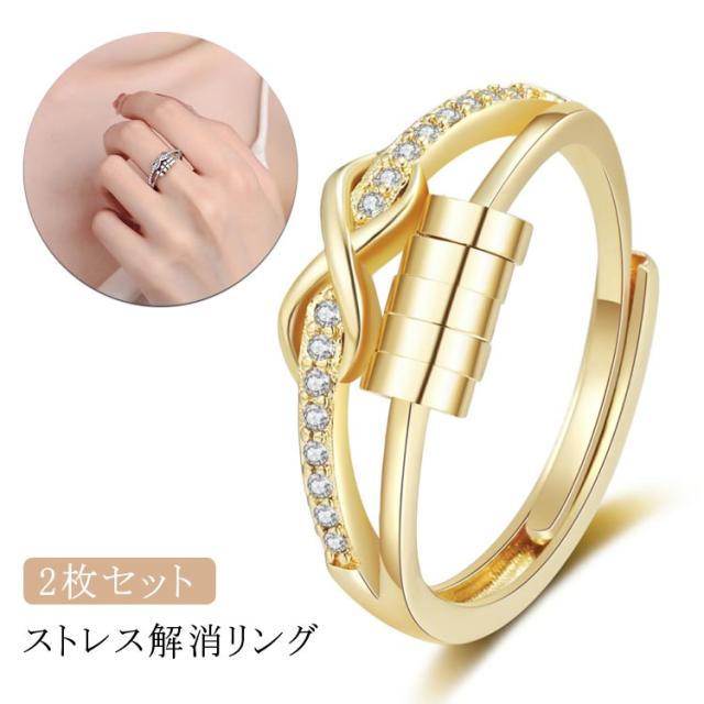 ストレス解消 調節可能 【2枚セット/シルバー+ゴールド】 【2枚セット/シルバー+ゴールド】 リング リング 不安 ビーズ付き ステンレススチール ジュエリー ユニ 可動ランナー 回転 心配 心のリラックス ファッションアイテム おしゃれ アンストレス シンプル