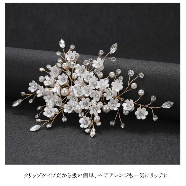 送料無料 髪飾り 子供 送料無料 ヘアアクセサリー リボンヘッドドレス ヘア アクセサリー パール&ビジューのフローラルヘアクリップラインストーン 髪飾り 子供髪飾り