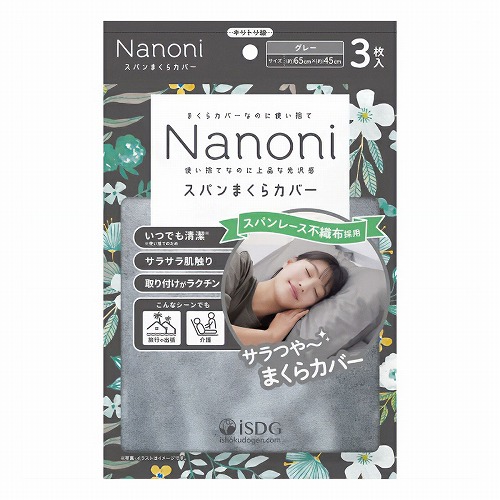 医食同源 Nanoni スパンまくらカバー グレー 3枚入 使い捨て