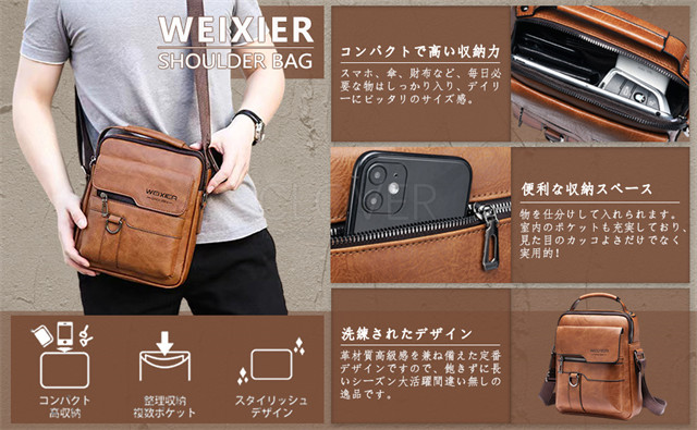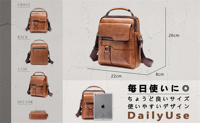 ショルダーバッグ メンズ、サイズ幅22cm×厚8cm×高26cm;重量約430g。