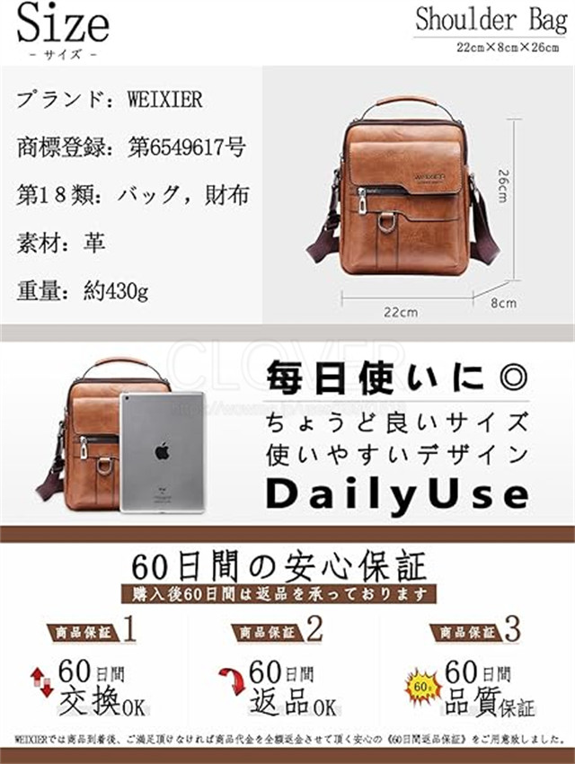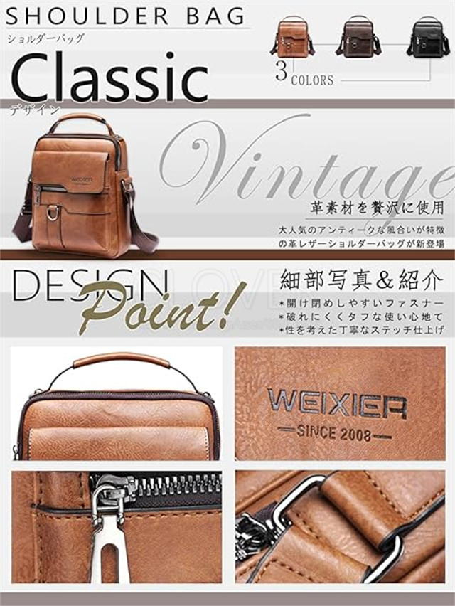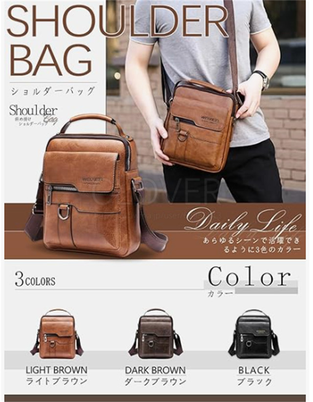 肩掛け式、斜めがけ式、手提げ式;防水性、耐摩耗性としわ防止性などの特徴があります。
