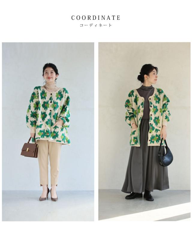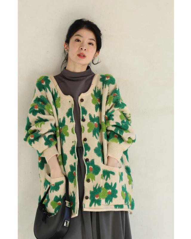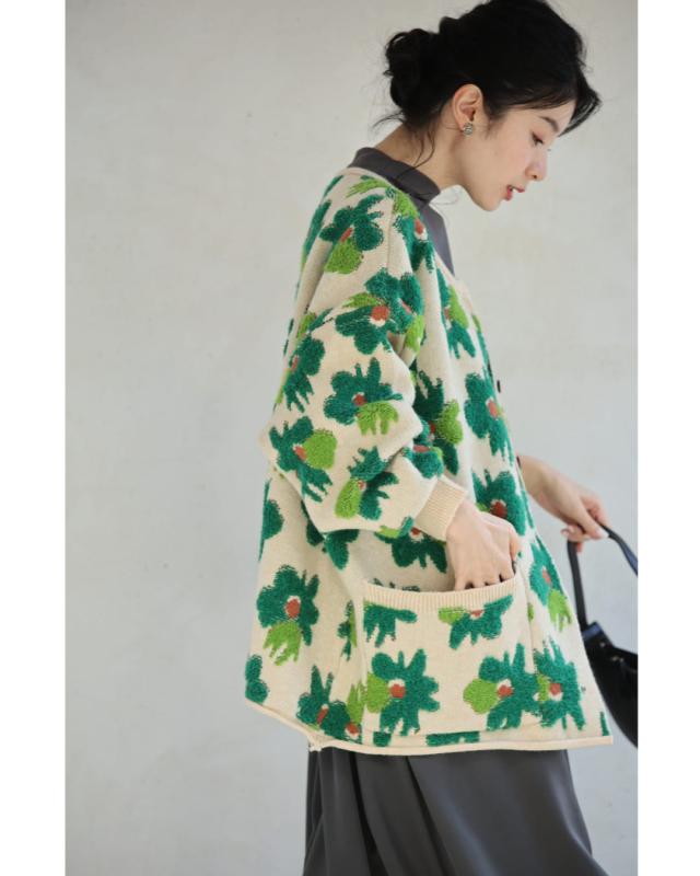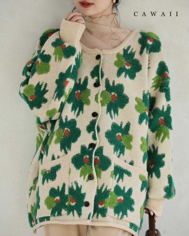 wkj00170 新作 新着 再入荷 CAWAII FRENCHPAVE フレンチパヴェ エレガント ベーシック カジュアル 可愛い かわいい カワイイ おしゃれ オシャレ お洒落 個性 個性的 定番 ベーシック 大人かわいい 大人可愛い 上品 女性らしい デザイン スタンダード ナチュラル きれいめ キレイめ シンプル フェミニン レディース レディースファッション 大人 ママ ミセス 30代 40代 50代 60代 暖かさに包まれる 浮かぶ 花柄 ブランケット カーディガン ニット 長袖 長そで ロング袖 ボタン 軽アウター ふんわり 柔らかい ワンサイズ Sサイズ Mサイズ Lサイズ 2Lサイズ LLサイズ XLサイズ 3Lサイズ フリーサイズ フリー 小さめ 小さめサイズ 小さい 小さいサイズ 低身長 痩せ ほっそり 小柄 細身 標準サイズ 大きめシルエット 大きい 大きめ ビッグシルエット ぽっちゃり F サイズ自由 春 秋 冬 秋服 秋物 冬服 冬物 あったかい あたたかい 暖かい 伸縮 ストレッチ 伸びる 伸縮性 楽ちん 楽チン グリーン 緑色 花柄 フラワー 柄 総柄 花 フラワー柄 日常着 普段着 日常使い おでかけ 旅行 女子会