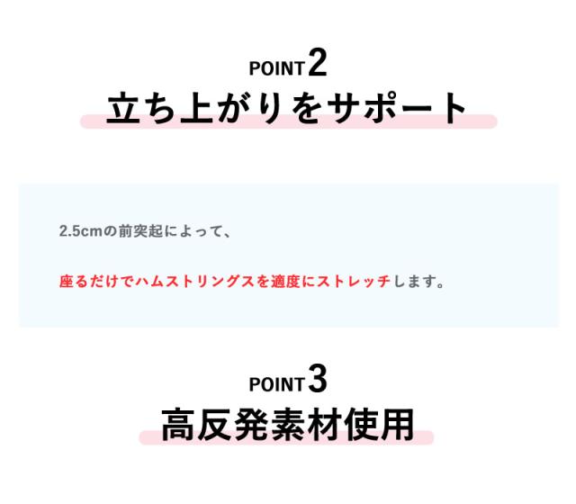 スッと立ち上がれて快適!座っているだけで前側の張り出し(突起部分)が太もも裏をストレッチ。