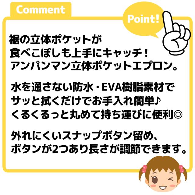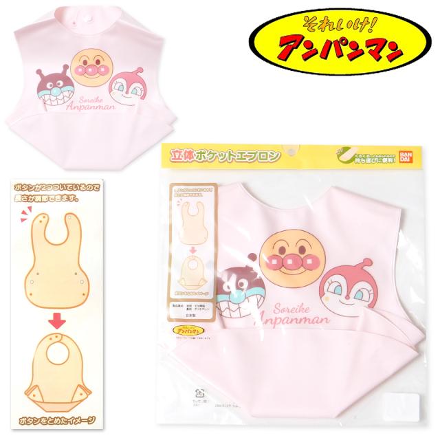 【送料無料】女児 ベビー 立体ポケット お食事エプロン スタイ アンパンマン 防水 EVA樹脂 やわらかい 日本製 女の子 iw-1222a-pk【メール便対応】