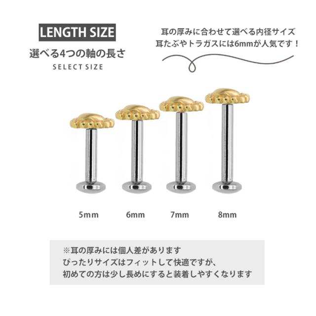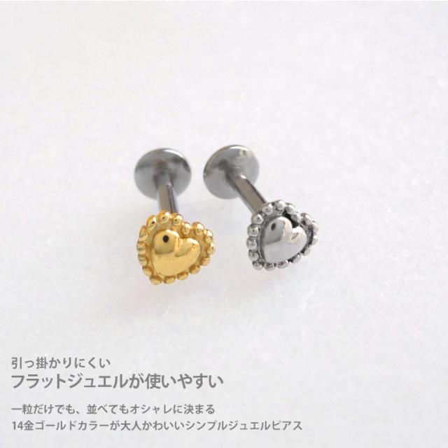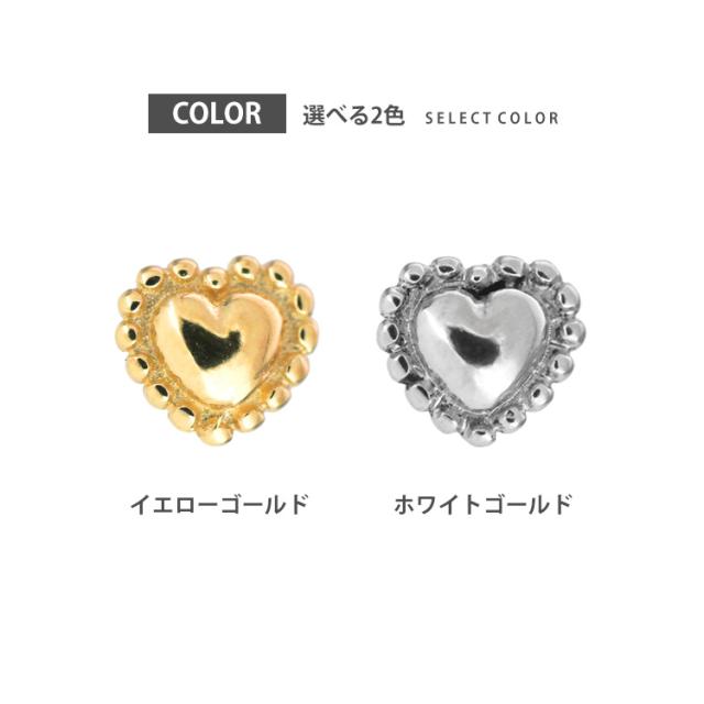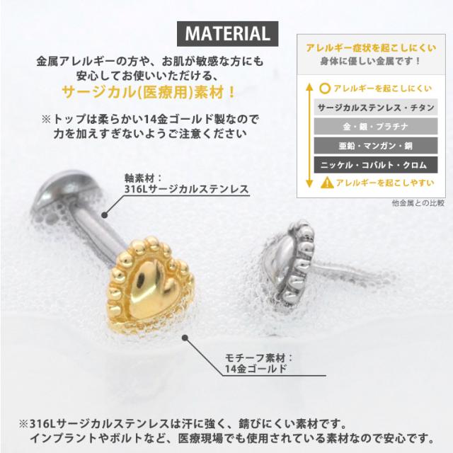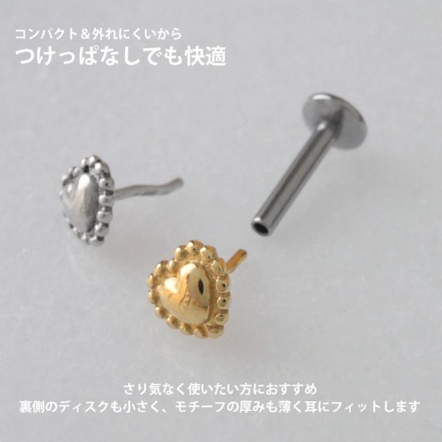 ピアス 軟骨 耳たぶ 20G 18G 16G 【ケース付】 14金 ミル打ちハートプッシュピンラブレット 片耳用 ファーストピアス セカンドピアス ボディピアス ピアッシングナナ 片耳用