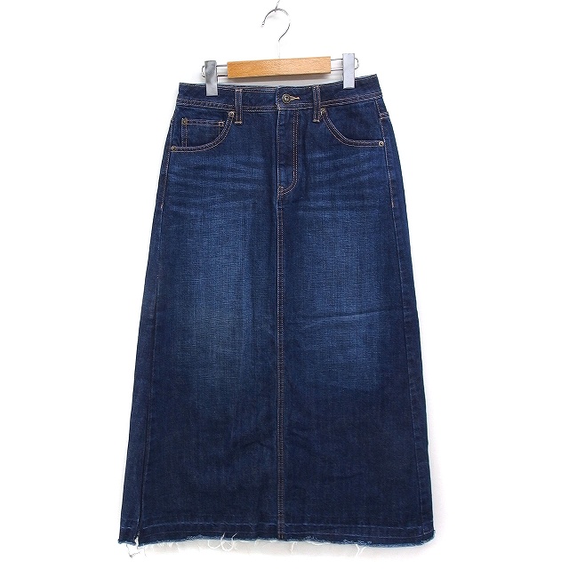 【中古】サンカンシオン 3can4on デニム Aライン スカート カットオフ ロング丈 2 ネイビー 紺 /FT27 レディース