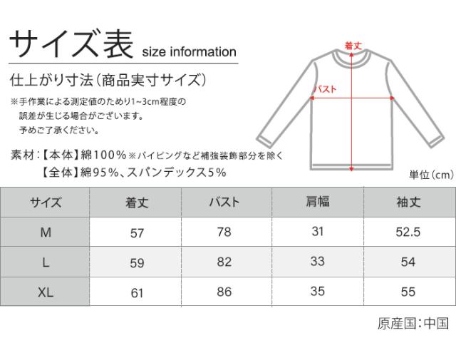 M:着丈57cm、バスト78cm、肩幅31cm、袖丈52.5cm L:着丈59cm、バスト82cm、肩幅33cm、袖丈54cm XL:着丈61cm、バスト86cm、肩幅35cm、袖丈55cm ※平置き実寸サイズです。手作業による測定値の為、1-2cmの誤差がある場合があります。予めご了承下さいませ。 |