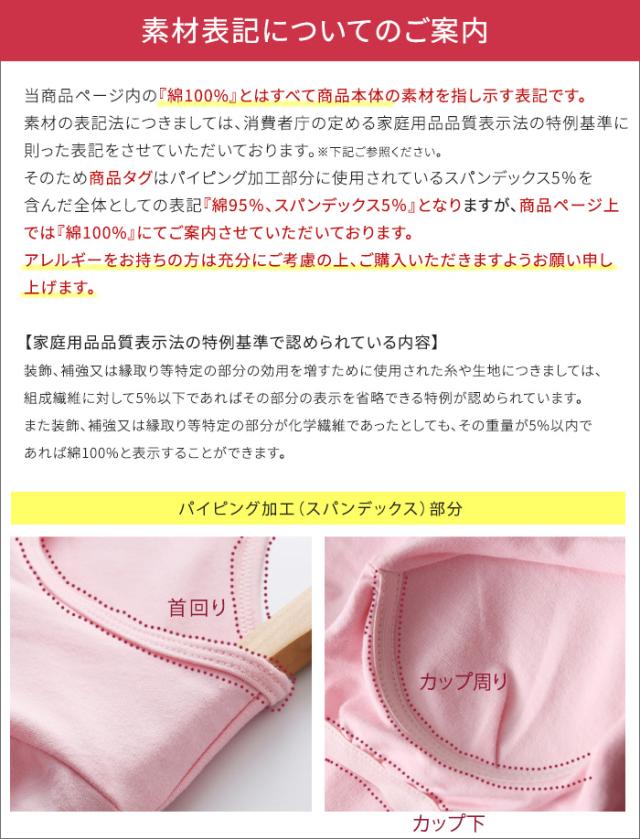 | 素材 | 【全体】綿95%、スパンデックス5% 【本体】綿100% ※パイピングなどの補強装飾部分を除く |
