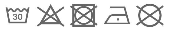 | 洗濯 | ![]() 水温30℃を限度として洗濯機で洗えます(ネット利用推奨)。塩素系及び酸素系漂白剤、タンブル乾燥、スチームアイロン、ドライクリーニングはご利用いただけません。 |