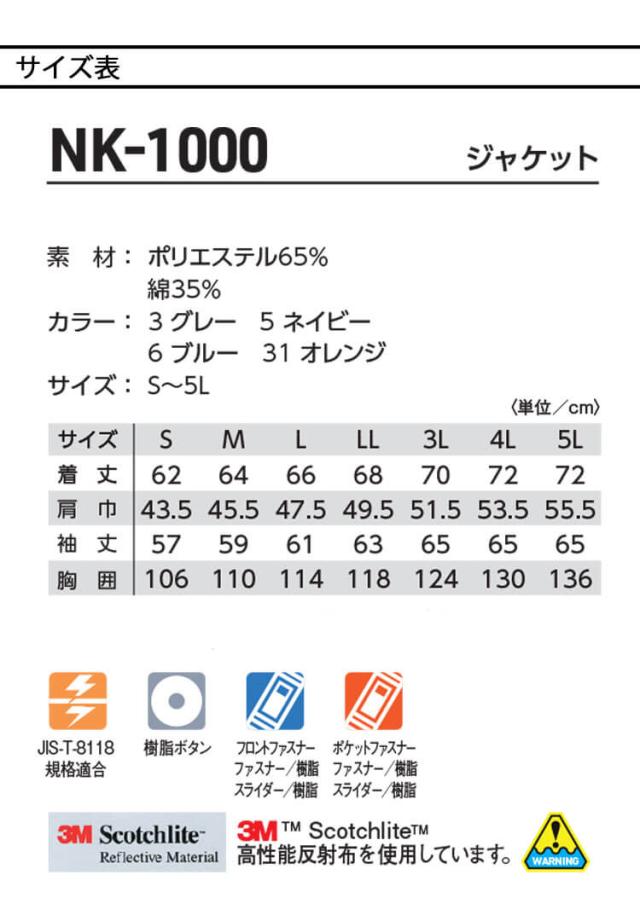 作業服 タカヤ商事 タカヤワークウェア ジャケット NK-1000 秋冬 長袖 製品制電 作業着 Night Knight ナイトナイト S-LL