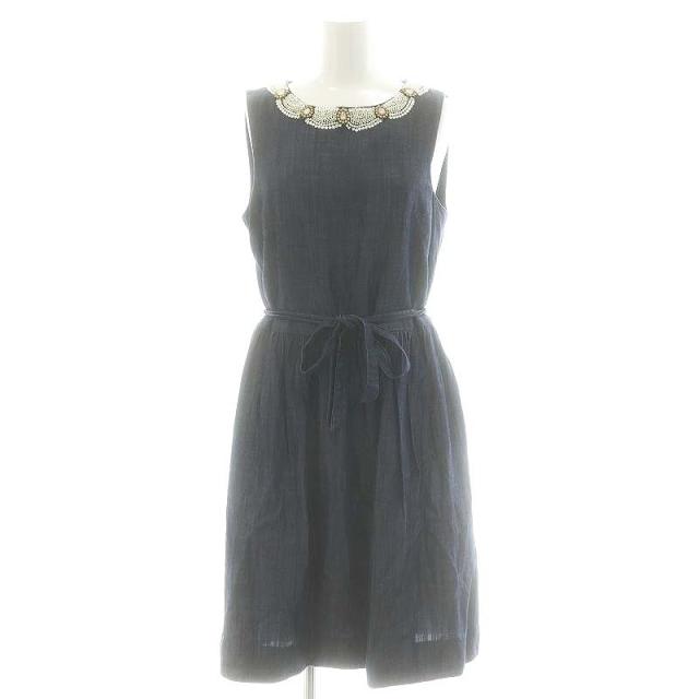 【中古】シェリーラファム ビジューパールワンピース ロング丈 ミモレ丈 ノースリーブ ベルト付き M 紺 ネイビー ■OS