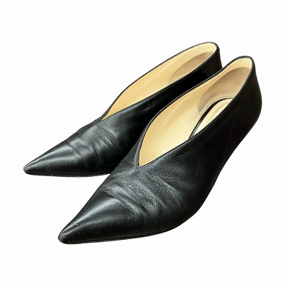【中古】セリーヌ CELINE Vカット ポインテッドトゥ レザー パンプス 黒 ブラック 35 22cm位 ☆AA★ レディース