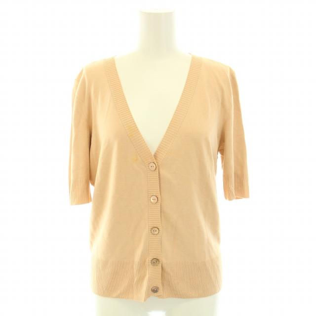 【中古】ナチュラルバイフォクシー ニットカーディガン Vネック 半袖 ハイゲージ 42 L ベージュ 30827 レディース