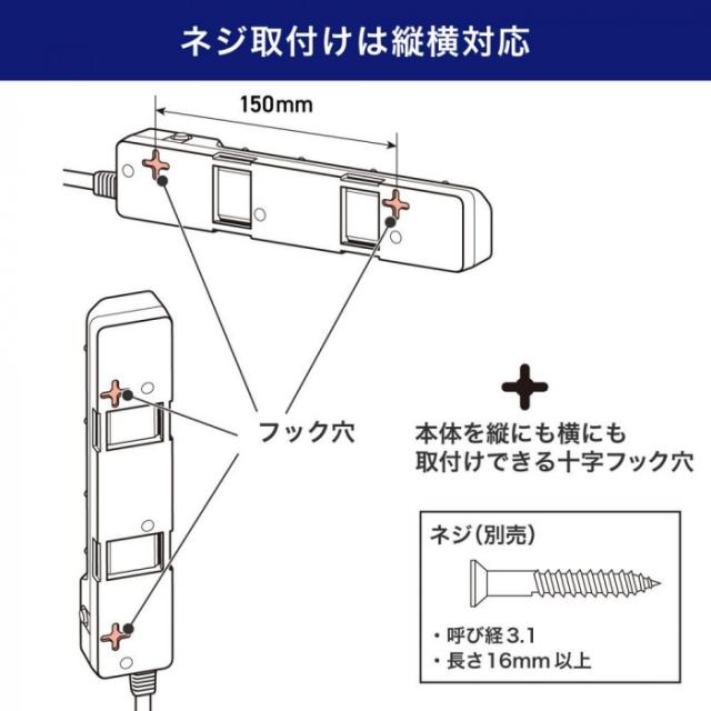 商品詳細:LEDランプ仕様。独立スイッチ。雷から接続機器を守る耐雷サージ付。過電流を防止するブレーカー内臓。プラグに雷ガード表示LED付。AC差込口はホコリ・ゴミの侵入を防ぐ扉付。熱や衝撃に強いPBT樹脂採用。コードは、断線に強い保護被ふく。ACアダプター用差込口。本体の向きによって、差込口向きが選べる。 生産国:ベトナム 仕様:定格:AC125V 15A合計 1500Wまで使用温度範囲:-10度~40度コード長:2m口数:4個口屋内専用国内専用