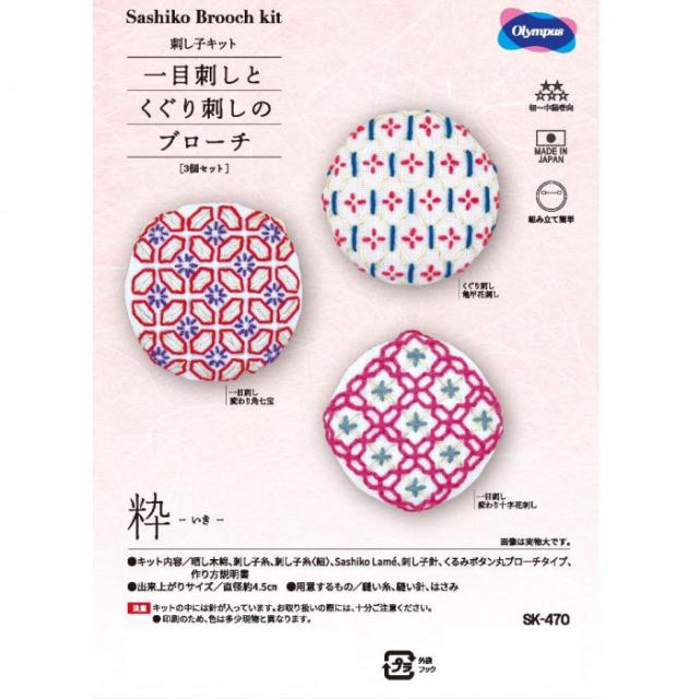 刺し子キット 「一目刺しとくぐり刺しのブローチ」 粋 SK-470 |b03