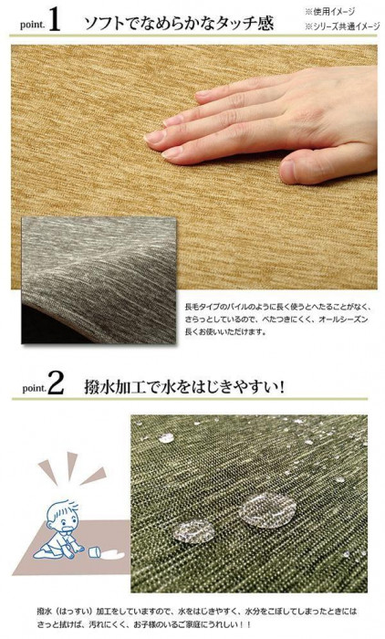 商品詳細:無地のシェニール織ラグです。毛足が短いためお掃除も簡単です。裏面にはフローリングの上でもご使用できるよう、滑りにくい加工を施しております。ホットカーペットカバーとしてもご使用できます。 生産国:中国 素材・材質:表地:ポリエステル100%(シェニール)裏地:ポリエステル100%(不織布)※滑りにくい加工中材:ウレタンフォーム3mm 商品サイズ:約185×185cm 仕様:洗濯機使用可(ネット使用)