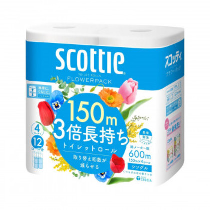 スコッティ フラワーパック トイレットペーパー 3倍 4ロール シングル 510-140045-00 |b03
