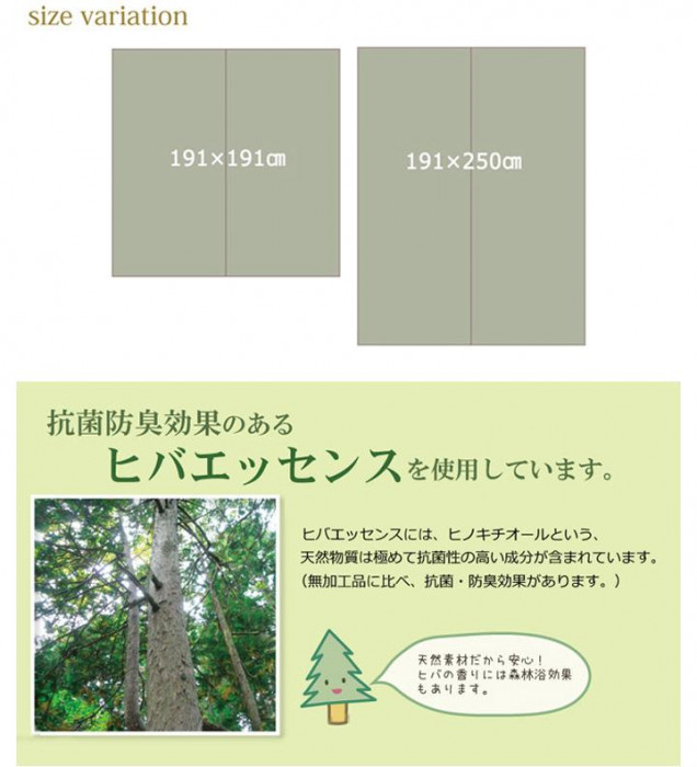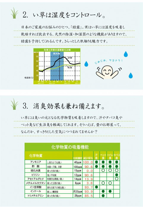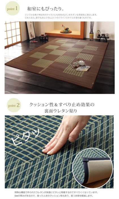 | 素材・材質 | 表地:い草(九州産) 裏地:ウレタンフォーム6mm ヘリ:綿85%、麻15% |