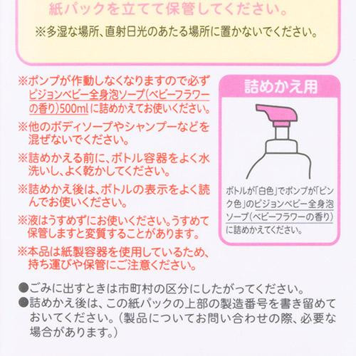 | 仕様 | 香り:ベビーフラワー 無添加 パラベン・アルコールフリー 弱酸性 硫酸系界面活性剤:不使用 詰め替え用2回分 |