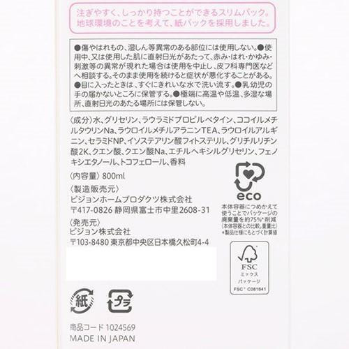 | 成分 | 水、グリセリン、ラウラミドプロピルベタイン、ココイルメチルタウリンNa、ラウロイルメチルアラニンTEA、ラウロイルアルギニン、セラミドNP、イソステアリン酸フィトステリル、グリチルリチン酸2K、クエン酸、クエン酸Na、エチルヘキシルグリセリン、フェノキシエタノール、トコフェロール、香料 |
