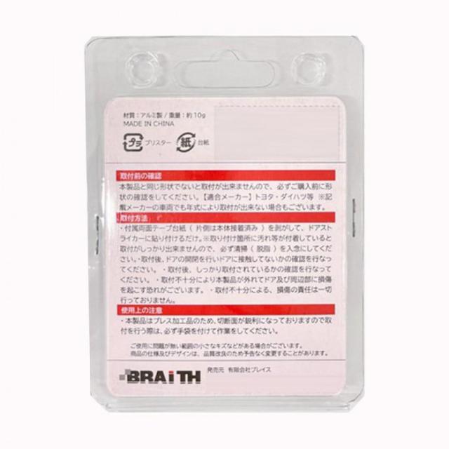 商品詳細:ドアストライカーのサビ隠し、ドレスアップに最適です。 生産国:中国 素材・材質:アルミ 仕様:本体入数:2個適合メーカー:トヨタ、ダイハツ等 付属品:両面テープ
