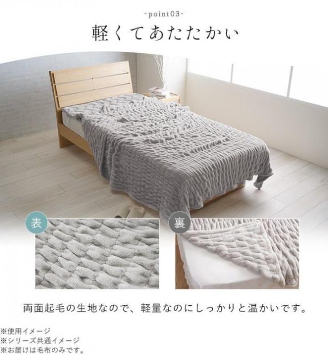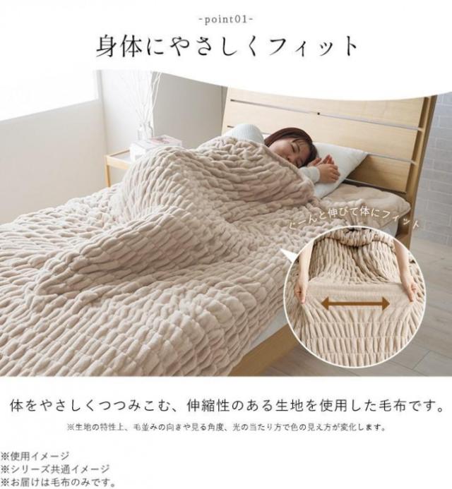 | 伸縮性のある生地を使用した毛布です。両面起毛の生地なので、軽量なのにしっかりと温かいです。洗濯機で洗うことができるので、いつでも清潔にご使用いただけます。 液温は30度を限度とし、洗濯機の弱い水流で洗濯ができます。 ※洗濯ネットを使用してください。 ※画面上のカラーはご使用ブラウザやモニターの設定により、実物とは若干異なる場合がございます。あらかじめご了承の上、ご注文をお願いいたします。 |