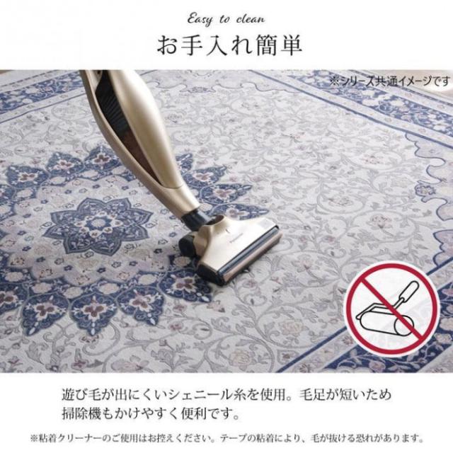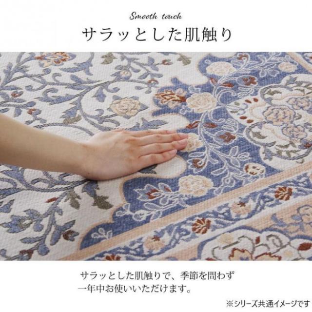 | シェニール織りは、18世紀末に英国で生まれ、ドイツで人気が出た両面パイルの織物です。上品な風合いのジャカード織りで、ペルシャ絨毯のようなメダリオン柄を表現。デザイン性が高く、耐久性にも優れています。さらっとした肌触りで、季節を問わず一年中お使いいただけます。裏面にはフローリングを傷つけにくい不織布張り。ホットカーペット、床暖房対応。毛足が短いためお掃除もカンタン。 ※掲載写真は表記サイズと異なる場合がございます。 ※画面上のカラーはご使用ブラウザやモニターの設定により、実物とは若干異なる場合がございます。 |