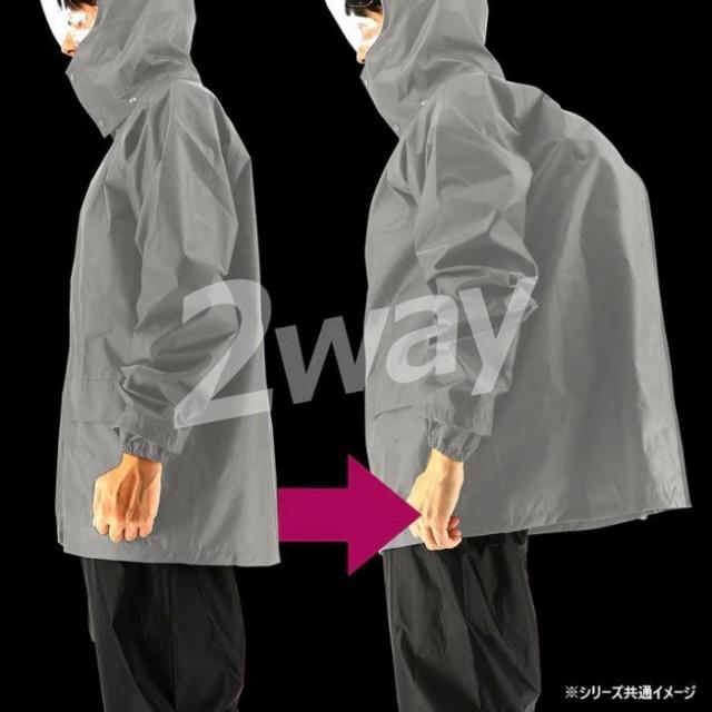 | 雨の日のリュック・自転車移動に大活躍。背中のファスナーを開閉すると容量が広がる、リュック対応の背部拡張機能付き。背部拡張後の背面には反射材を装備。フードは透明シールド付き。手首袖口は、二重袖&サムホール付き。耐水圧は10000mmH2O以上、縫い目には防水テープ加工を採用し、抜群の防水性を発揮。上下メッシュ裏仕様です。 |