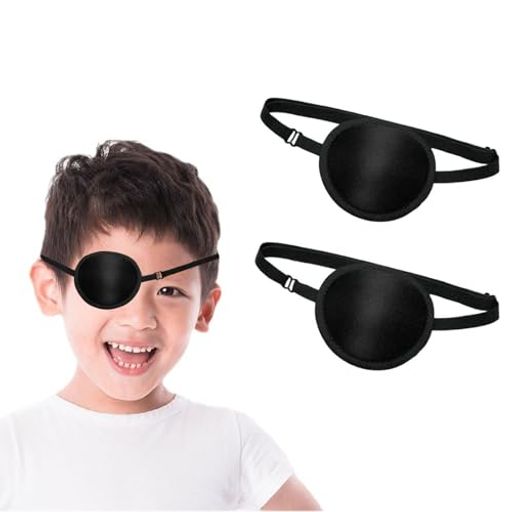 LIROYAL 眼帯 シングルアイパッチ (2個入り) 片目眼帯 両目用 立体 調節可能 遮光 大人 子供 弱視 斜視 視力矯正 視力検査 (黒)