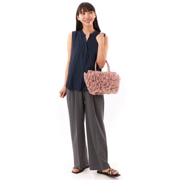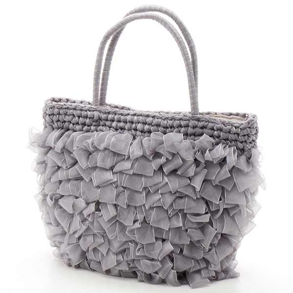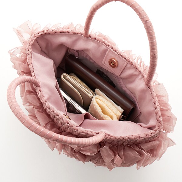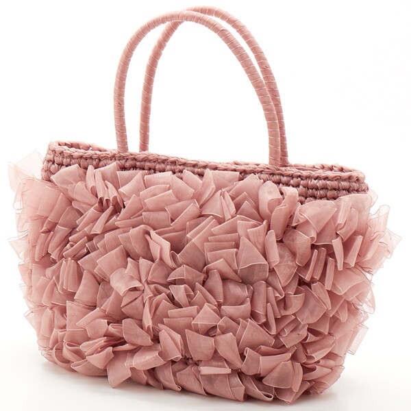 【COOCO クーコ】オーガンジーテープフリル トートバッグかごバッグ カゴバッグ
