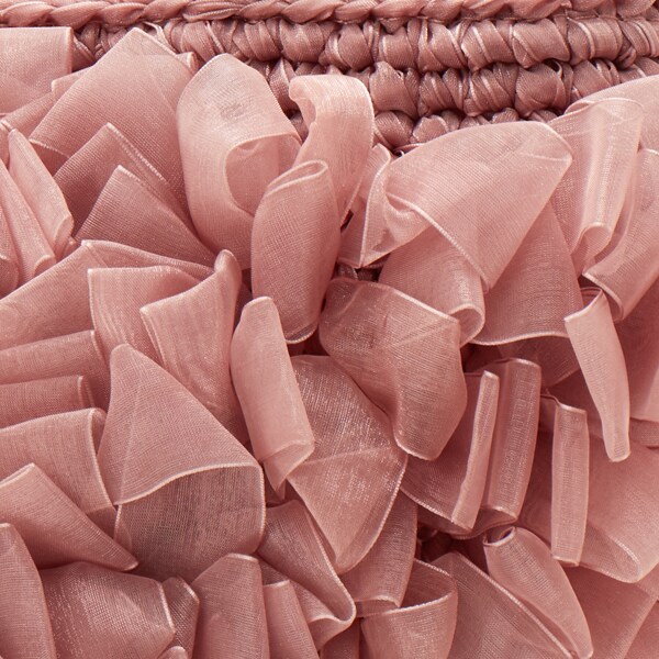 透け感のあるオーガンジーテープをふんだんに使って、フェミニンなカゴバッグに仕上げました。