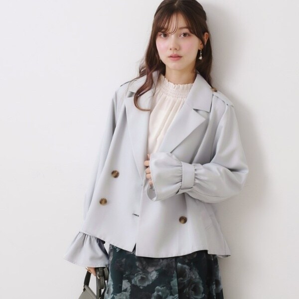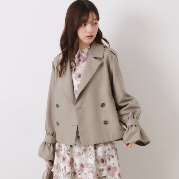 キャンディースリーブが可愛い、ショート丈トレンチコート