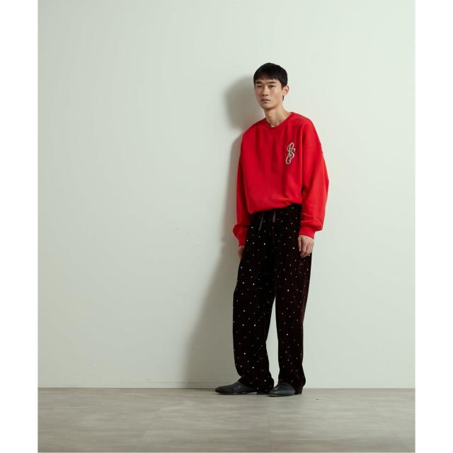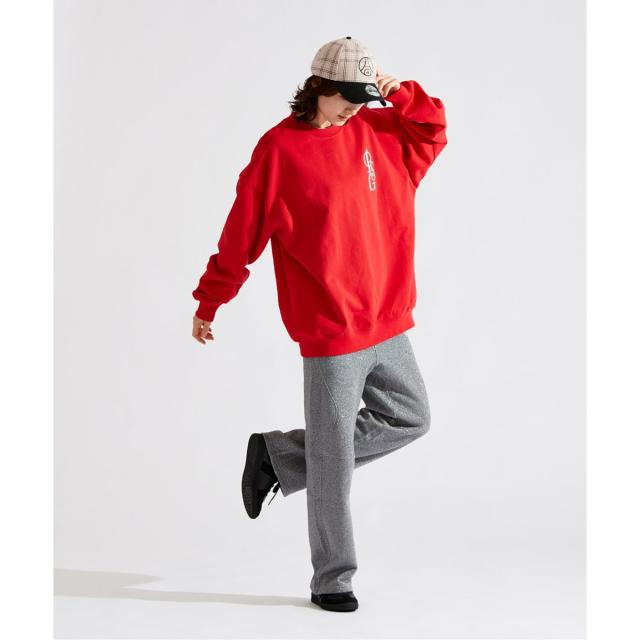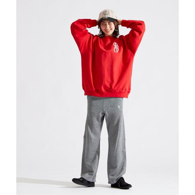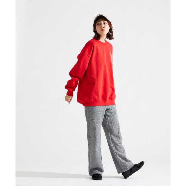 同素材のスウェットとパンツでのセットアップ着用もオススメ◎