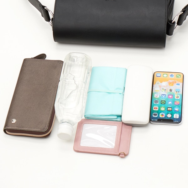 長財布も500mlボトルも入るお出かけにぴったりなサイズ。