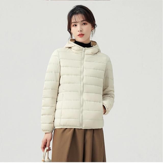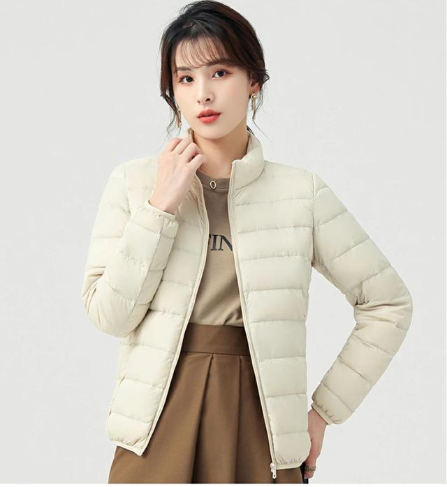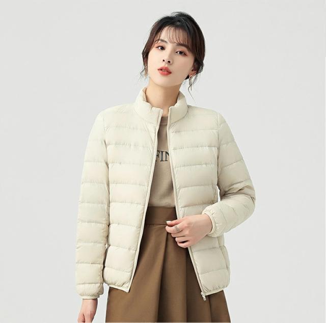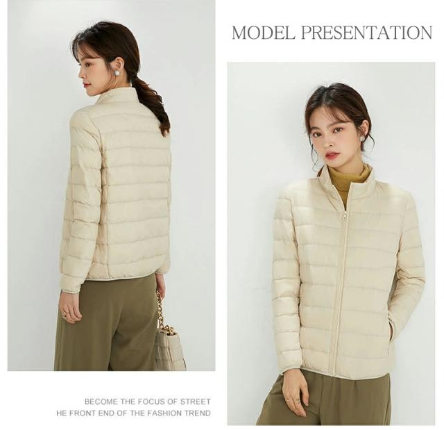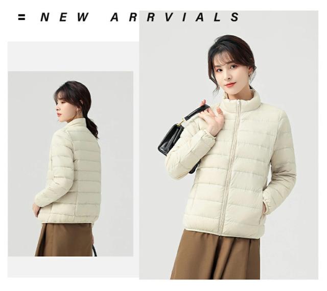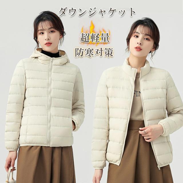 超軽量 ダウンジャケット コート ジャケット レディース ダウンコート ノーカラー ホワイト 冬服 保温性抜群 軽い 防寒 薄い 無地 撥水加工 シンプル ショート丈 収納袋 ポーチ付き コンパクト 冬 おしゃれ 旅行 通勤通学