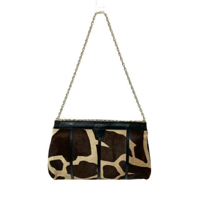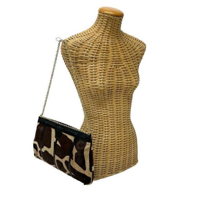 チェーンバッグ ファー ハラコ レザー レオパード 柄 チェーンショルダーバッグ ショルダーバッグ 肩掛け ハンドバッグ レディース ブラウン / ベージュ / ブラック