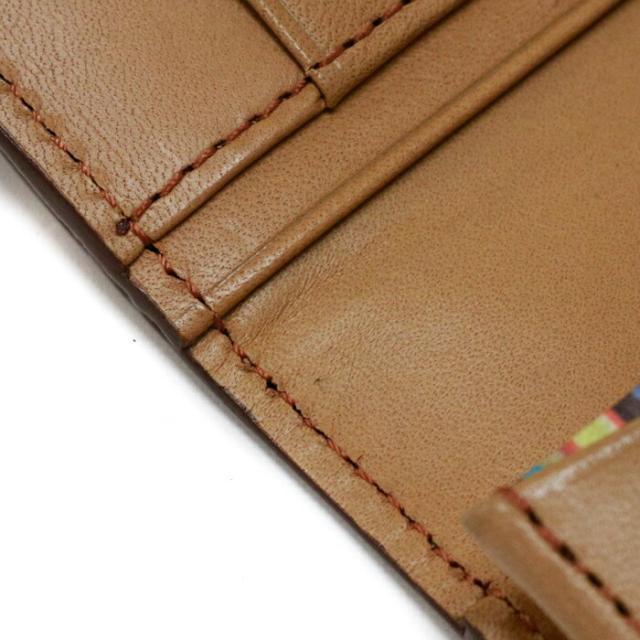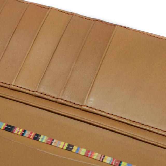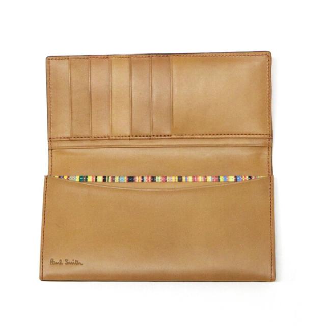 【Aランク】 ポールスミス Paul Smith コンチネンタルウォレット カーフレザー マルチストライプ PSY907 長財布 かぶせ蓋 ロングウォレット メンズ レディース キャメル (ブラウン) 美品 中古 may21008