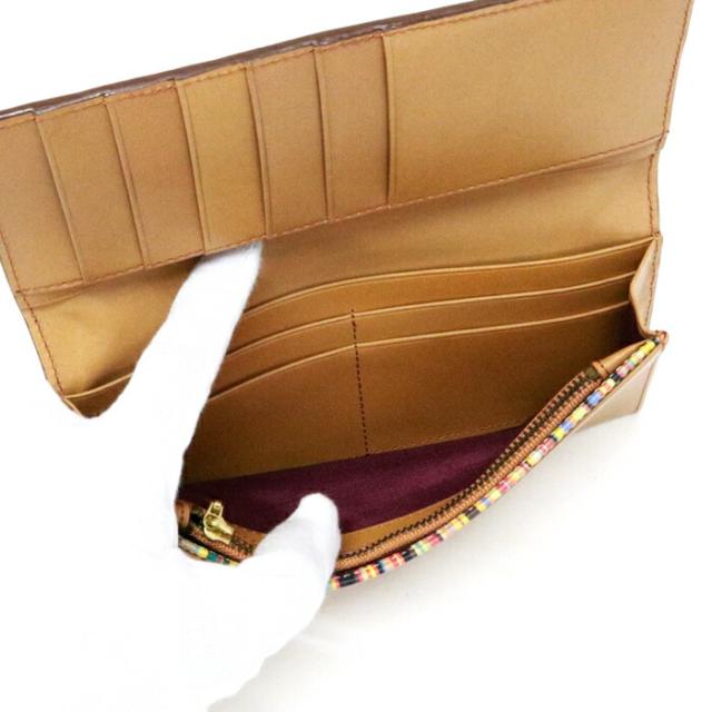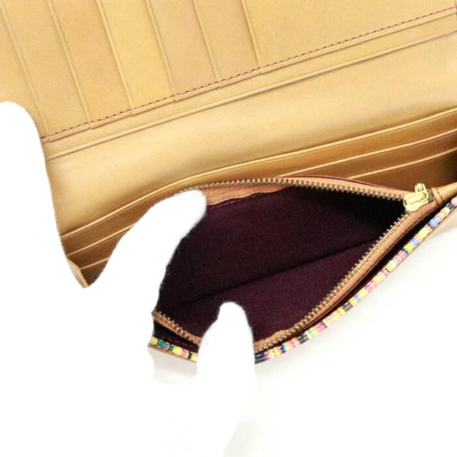 コンチネンタルウォレット カーフレザー マルチストライプ PSY907 長財布 かぶせ蓋 ロングウォレット メンズ レディース キャメル (ブラウン)