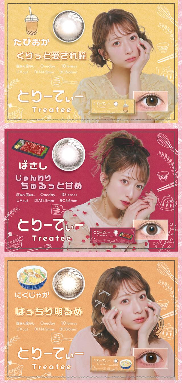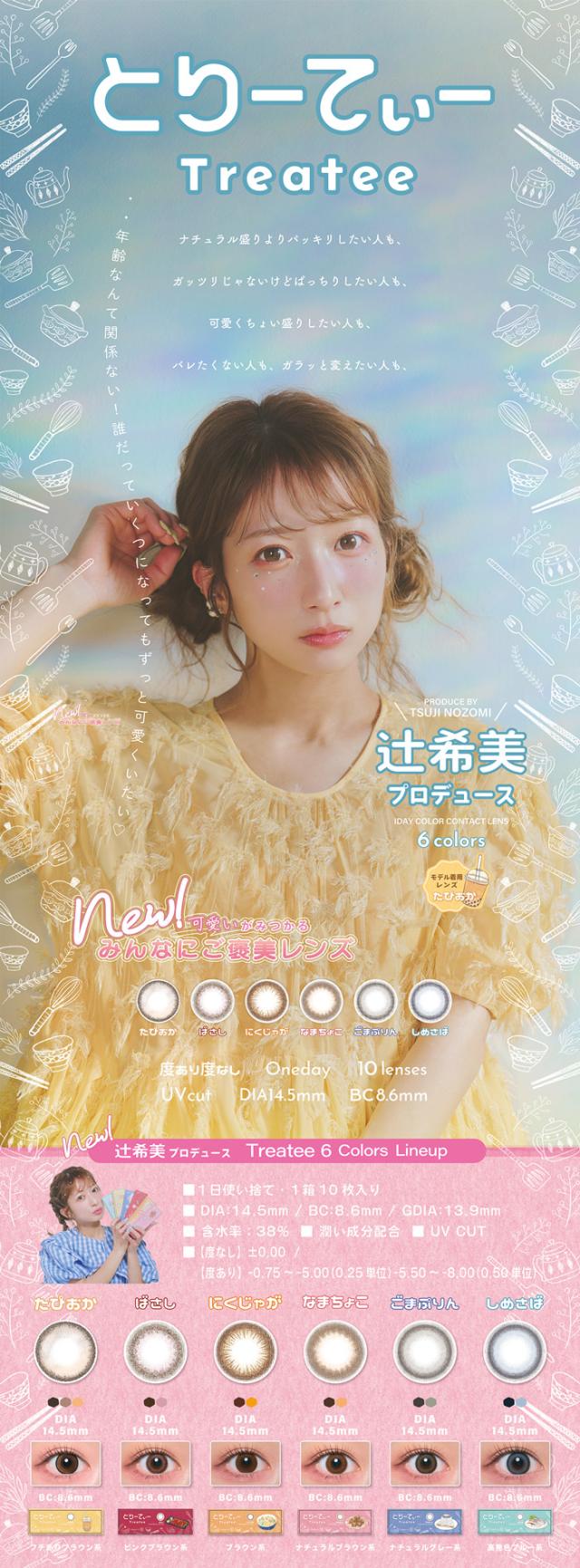 カラコン ワンデー 度あり treatee とりーてぃー 辻希美 1day BC8.6 DIA14.5mm 1箱10枚入り 1日 UVカット 低含水 カラー コンタクト可愛い 大人 盛れる デカ目 フチあり ナチュラル 自然 ブラウン グレー ブルー 高度数 ハイパワー
