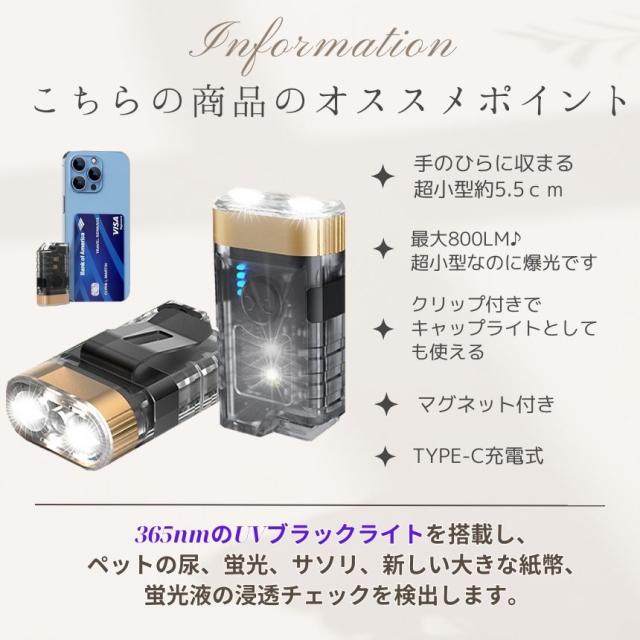 懐中電灯 充電式 小型 ブラックライト ハンディライト 作業灯 UVライト 紫外線ライト led ライト キャップライト COB クリップ 最強 ハンディ 磁石 マグネット アニサキス USB TYPE-C フラッシュライト 作業 防水 持ち運び 軽量 ウォーキング キャンプ 防犯 防災
