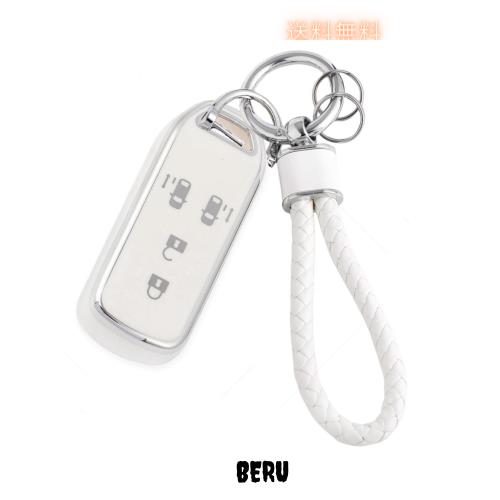 ◆商品名:[HOYZE] N-BOXキーケース 革編み込み キーカバー 可愛い NBOX スマートキーケース カラビナキーホルダー傷防 (シルバーホワイト)