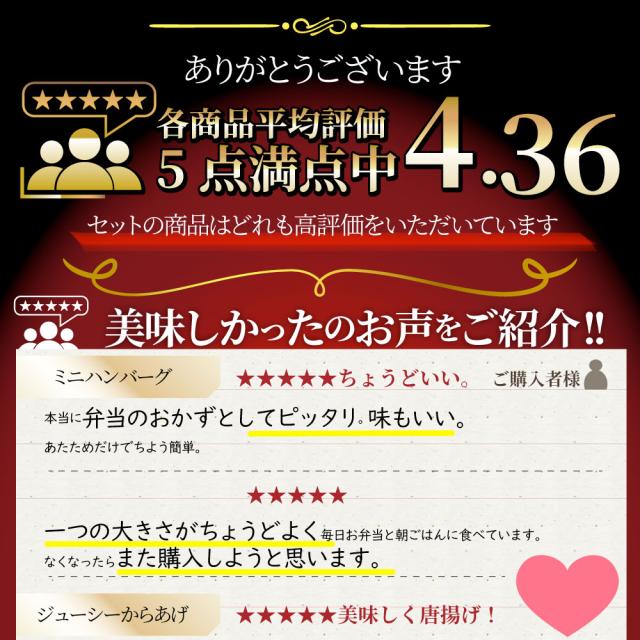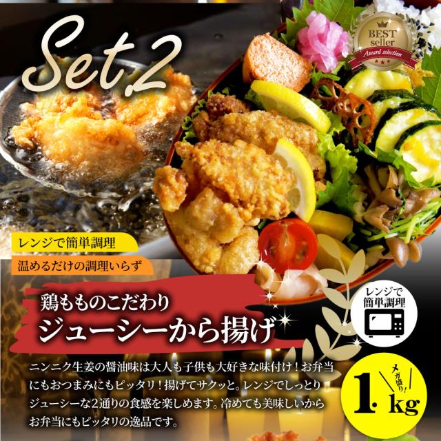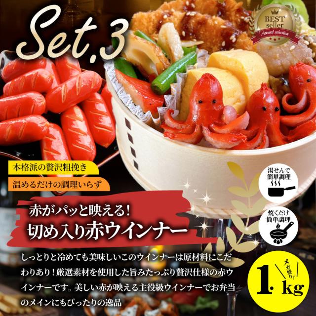 | セット内容 | ・若鶏から揚げ 1kg ・ハンバーグ 1kg ・ウインナー 1kg |