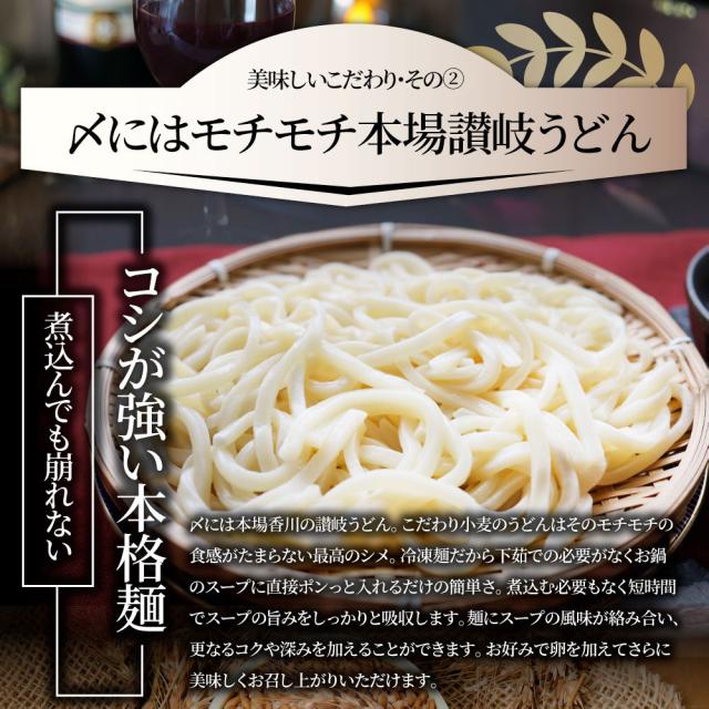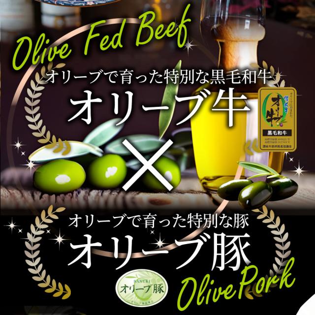 | ◇内容量 | 合計:600g ・オリーブ牛ももスライス 300g ・オリーブ豚バラスライス 300g ・讃岐うどん×4 ・ポン酢×4 ・ごまだれ×4 ・うどんつゆ×4 |
