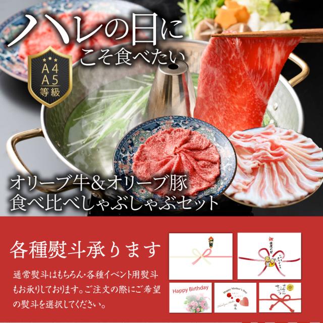 オリーブ牛&オリーブ豚 食べ比べ しゃぶしゃぶセット 4人前 肉 鍋 牛肉 豚肉 食品 ブランド牛 ブランド豚 送料無料 贈答国産 ギフト プレゼント ギフト