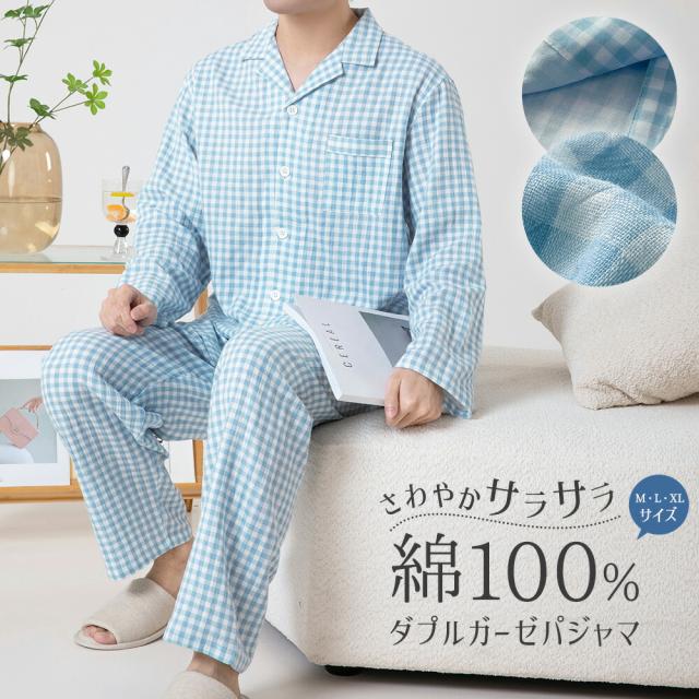 パジャマ 上下セット ダブルガーゼ ガーゼパジャマ メンズ 男 綿100% 長袖 秋 春 冬 前開き パジャマ 寝巻き ルームウェア お揃い