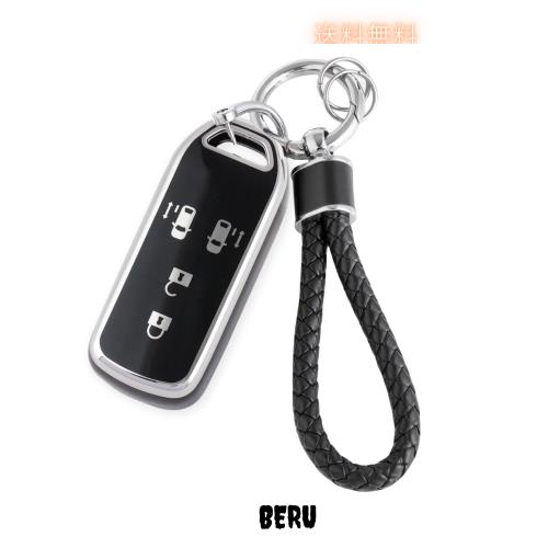 ◆商品名:[HOYZE] N-BOXキーケース 革編み込み キーカバー 可愛い NBOX スマートキーケース カラビナキーホルダー傷防(シルバーブラック)
