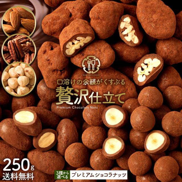 ナッツ チョコ 「ピーカンナッツ・アーモンド・ヘーゼルナッツの3種から選べる プレミアムショコラナッツ〜口どけの余韻がくすぶる贅沢仕立て〜250g 」 送料無料 [ チョコレート チョコ ミルクチョコ ]
