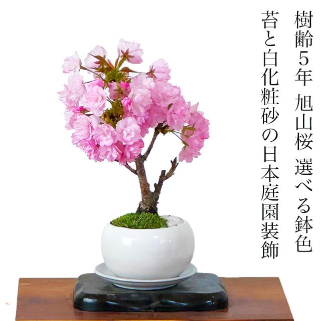 盆栽 桜 ミニ盆栽 旭山桜 樹齢5年 育て方ガイド付 3色の選べる鉢色 自宅でお花見 育てやすく毎年開花しやすい樹種 苔植物 盆栽 桜 ミニ 室内 初心者 還暦 花 桜 フラワーギフト 誕生日 プレゼント