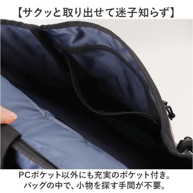 | 注意点 | 【ポケット仕様】 ※内側:面ファスナーベルト式PCポケット×2(お好みの方に面ファスナーを留めることが可能です)、ファスナー式メッシュポケット×1 ※前面:縦ファスナーポケット×1(内側にオープンポケット×2) ※サイド:オープンポケット×1、メッシュポケット×1 ※上部:ファスナーポケット×1 ※背面:シークレットポケット×1 ※年月の経過や空気中の湿度や紫外線、熱や汚れ等により、劣化などが生じる場合があります。 ※長時間日光にあたったり、摩擦、水漏れなどによる色落ちや色移りすることがあります。 ※お取り扱いの際は、商品やパッケージなどに記載されている品質表示、アテンションタグ、ご使用上の注意事項などを必ずご確認下さい。 ※本来の目的以外にはご使用にならないで下さい。 ※カメラやモニターの性質により、画像と実物の色の違いがある場合がございますのでご理解願います。 |